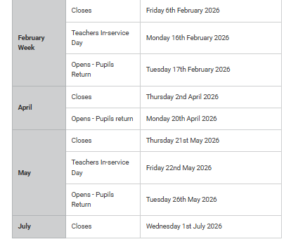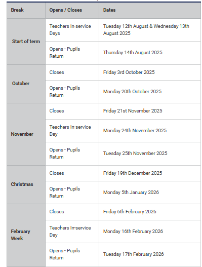 School holiday dates for all areas of Argyll and ButeAugust 2025 – June 2026